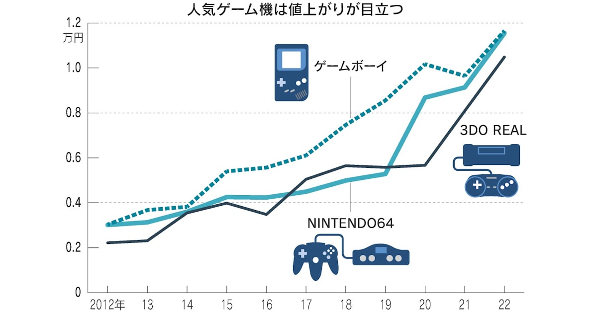 1990年代ごろに発売されたレトロなゲーム機が中古市場で値上がりしている。機種によっては3年で価格が3倍超になるなど人気が熱を帯びる。