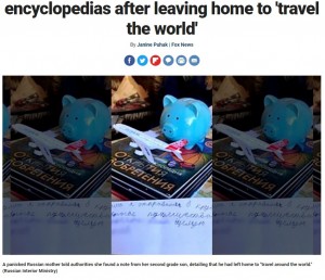 貯金箱を持って家出した8歳男児 「世界を旅してくる」メモを残して(露)